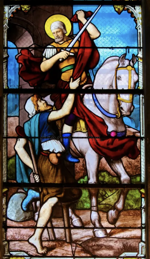 While he was still in the military as a cavalryman, Martin cut his cloak in half to share it with a beggar. That night, he dreamed that Jesus himself was clothed in the torn cloak. When he awoke, the garment was restored.